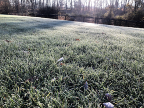 The time for late spring frost to be striped by shadows of the forest shortens with each thump of the Pileated Woodpecker on the oak tree.